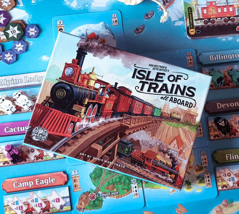 Isle of Trains: All Aboard is all about balancing the need to upgrade your train, with loading cargo or passengers onto opponent’s train for big bonuses, and delivering cargo and passengers to their destinations before anyone else. Build your engine effectively enough to be remembered as the greatest train conductor on the Isle of Trains!